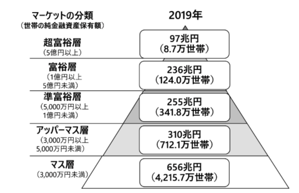 純金融資産5億円以上の超富裕層は、8.7万世帯で全体の0.16%