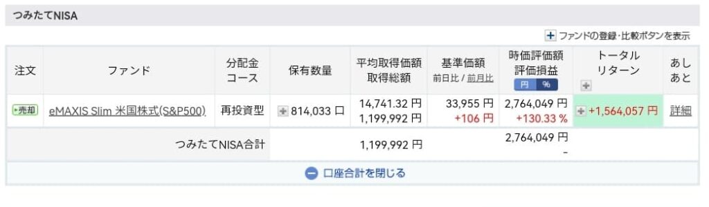 積立投信を買い始めたのが、2020年3月なので、ちょうど4年11ヶ月目ということになります。