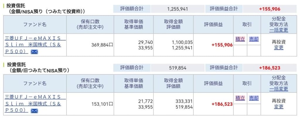 新旧両方のNISA口座を保有しているので、NISA分は一つにまとめてこちらで集計します。