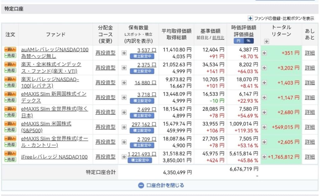 それでは、最後に現在の保有ファンドのトータルリターン(ファンド合計)です。