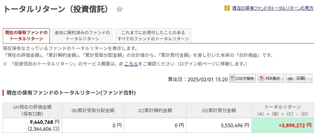 現在の保有ファンドのトータルリターン(ファンド合計)