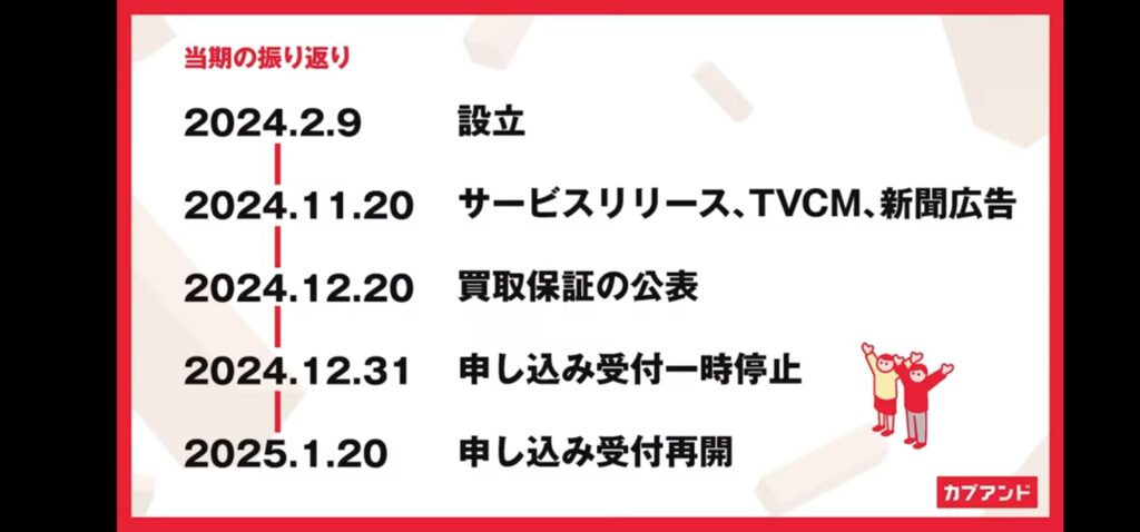 この約1年のうち、実際に売り上げが発生したのは、カブアンド各種サービスがリリースされた2024.11.20からであり、その期間はわずか2ヶ月と10日間程度です。