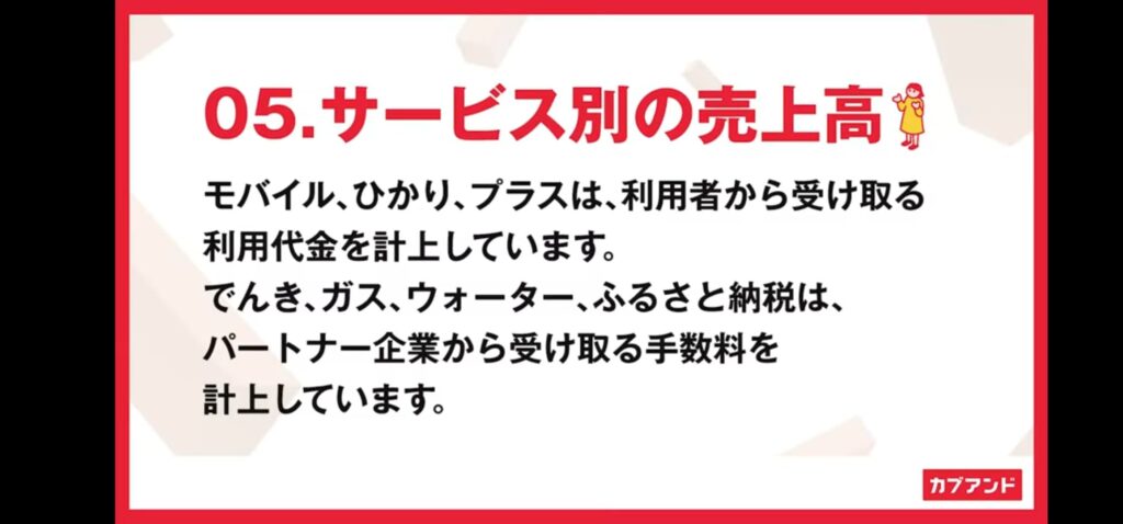次に、サービスごとの売り上げの計上方法よ説明がありましたが、ここは特に解説する必要も無かったと思います。