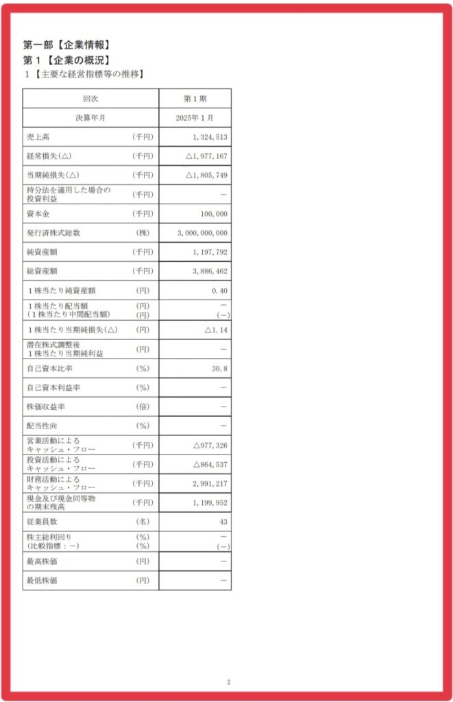 赤字だけを見ると悲惨ですが、そもそもベンチャー企業ですし、初年度なので実質的な売上発生期間がそもそも少ない。そういった点を加味すると、