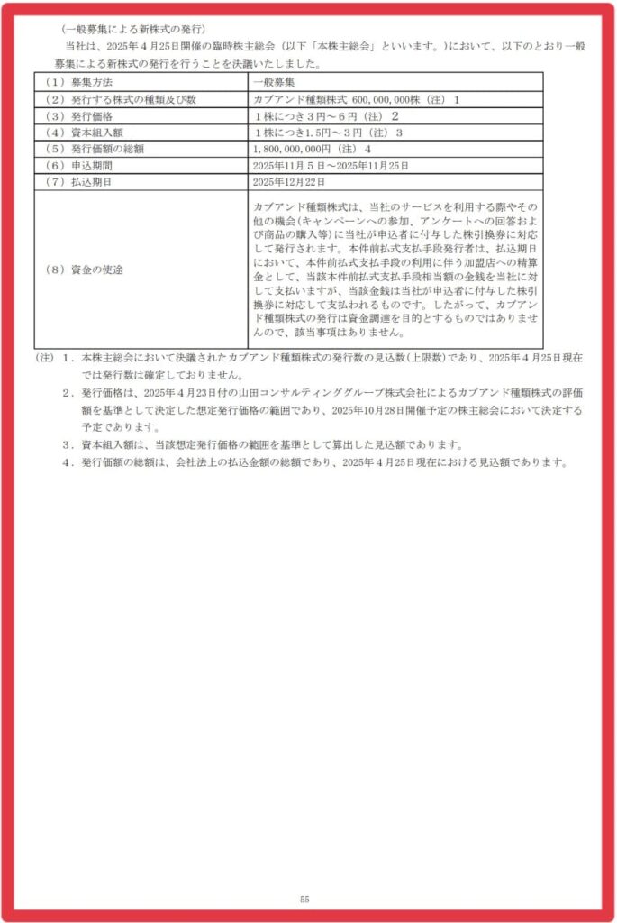 そして、3枚で株引き換えできるのは2025.5.23まで。実際に利用者が株を手にするのは2025.6.20になります。「5/2から5/23の間に必ず株引換券をお持ちの方は、株に引き換えする手続きをお願いしたいと存じます」と締めくくってました。