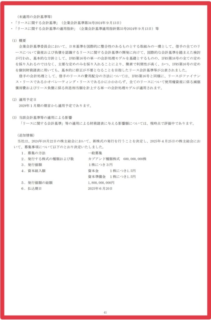 これで2025.12.22にカブアンド社の株式数は42億になりますね。