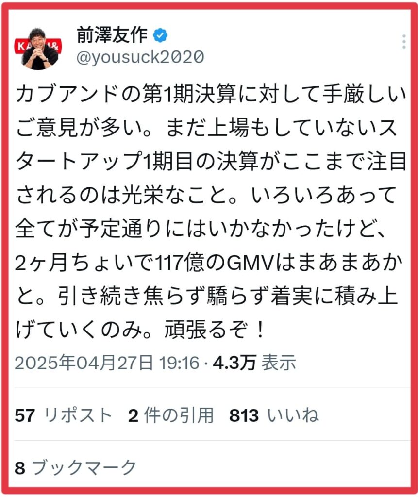 2025.4.25前澤さんのカブアンド社が第一期決算を発表しましたね。