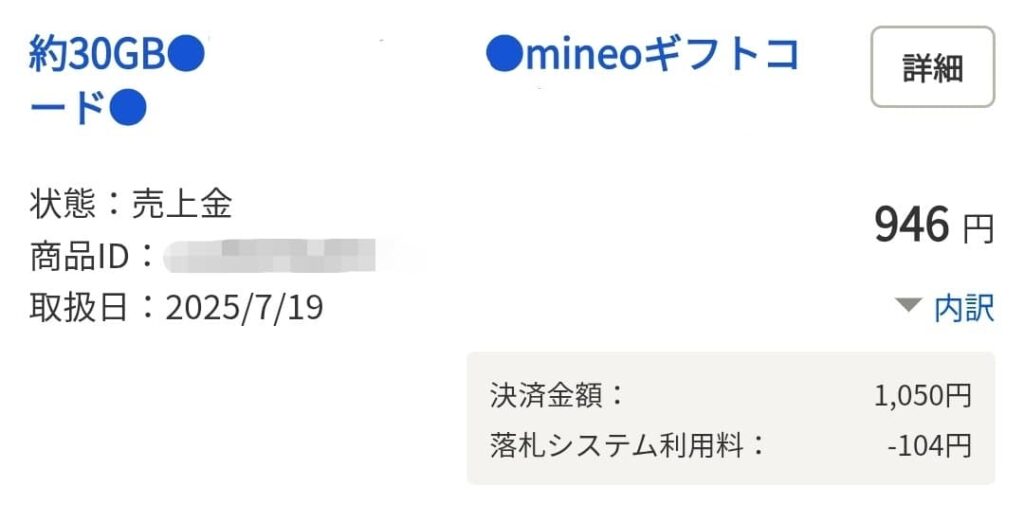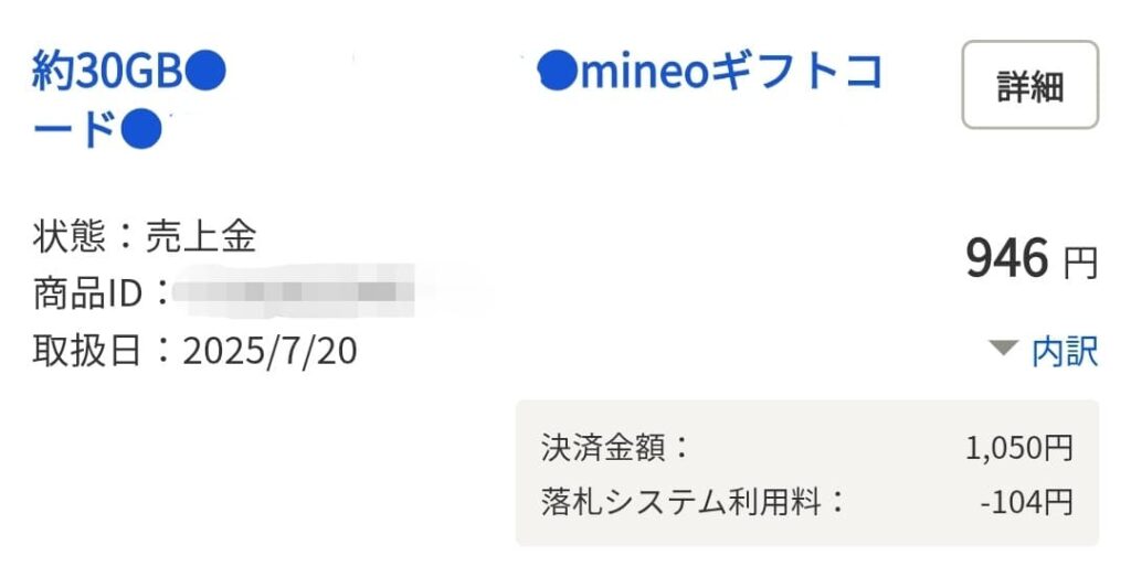 1GB単価35円で30GB1,050円で出品したところ、わずか5日間で2回も落札されました。