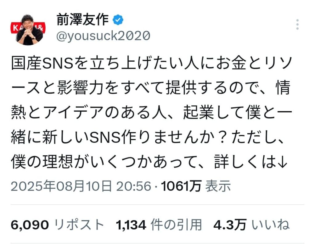 「前澤友作氏、SNS詐欺にカモを取られて激おこ。とうとう自分でSNSを作ってカモの囲い込みに走る」です。