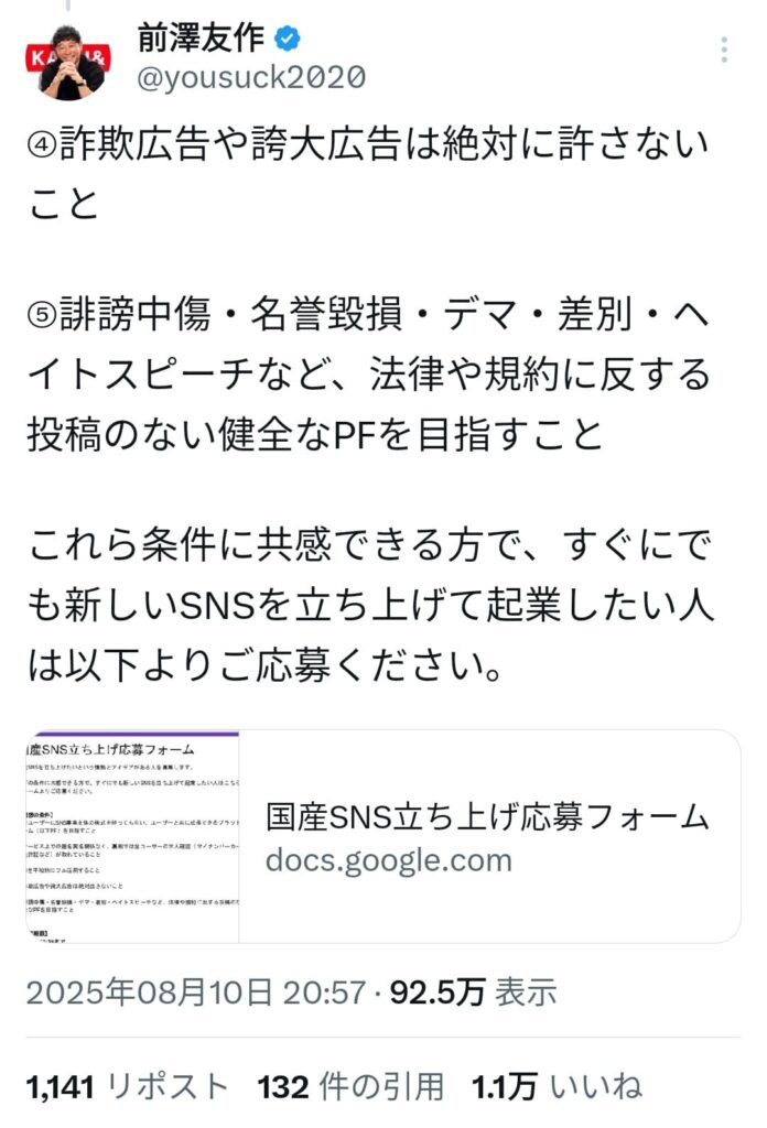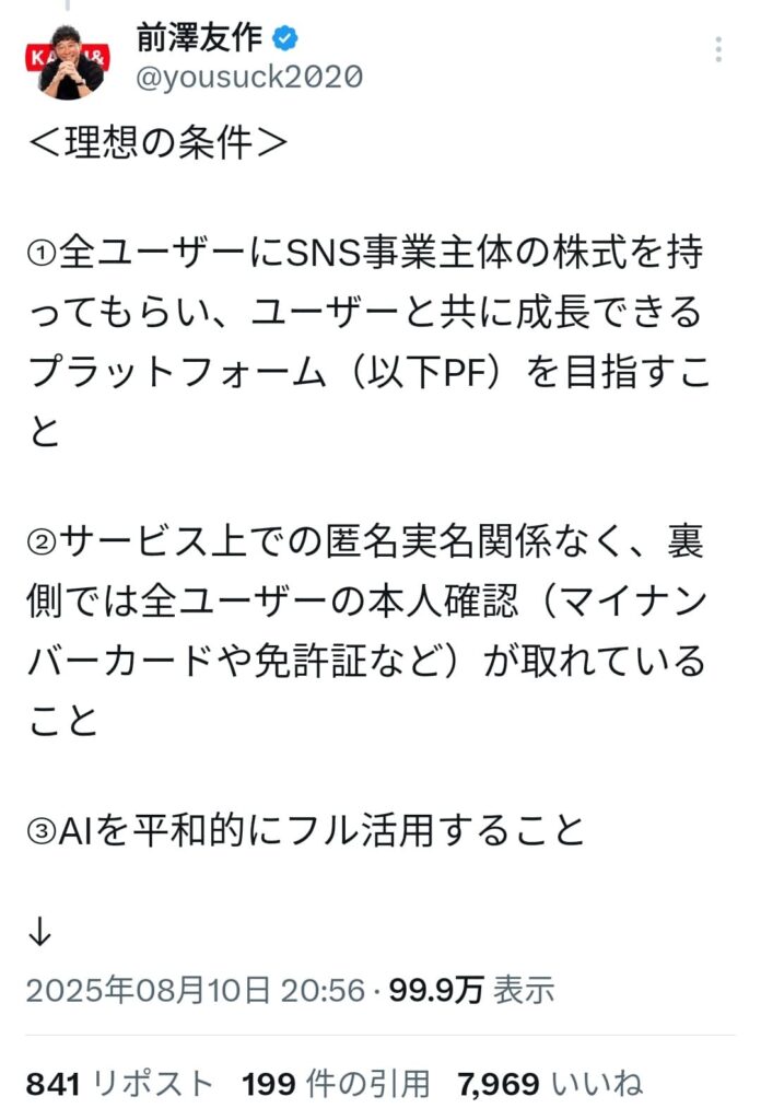 前澤さんが決めるなら、トランプSNSと何も変わらないね。
