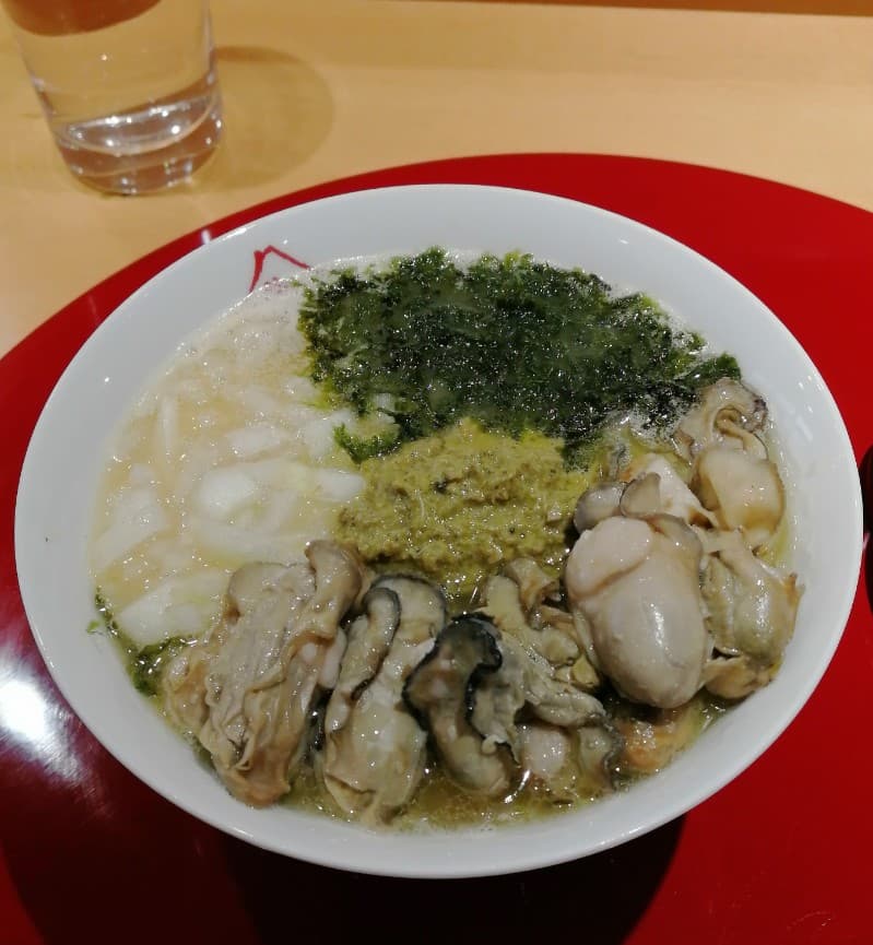 福岡市中央区西中洲にある鶏白湯ラーメン「御山」です。ネットニュースで見つけて行ってきました。なんとオープン記念イベントで、糸島産の牡蠣を乗せ放題!
