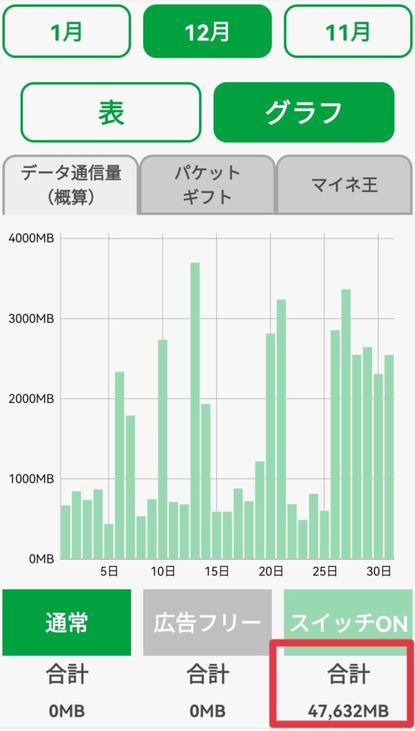 12月10日からパケット放題プラスが3.0Mbpsに増速されたことと、年末年始休暇で動画を観まくったのが大きいですね。